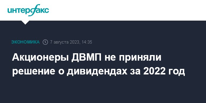 Акционеры ДВМП не приняли решение о дивидендах за 2022 год