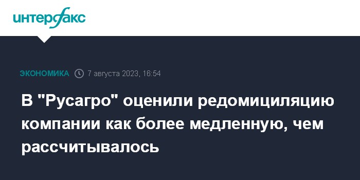Москва. 7 августа. INTERFAX.RU - Редомициляция "Русагро" идет несколько медленнее, чем рассчитывалось, сообщил CFO группы Александр Тарасов на конференции по итогам второго квартала этого года.