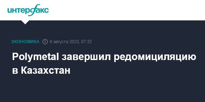 Москва. 8 августа. INTERFAX.RU - Polymetal завершил редомициляцию с Джерси в Международный финансовый центр "Астана" ("МФЦА") в Казахстане, сообщила компания.