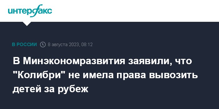 В Минэкономразвития заявили, что "Колибри" не имела права вывозить детей за рубеж