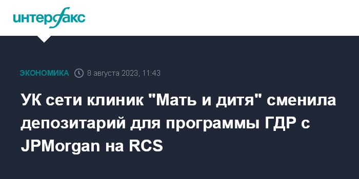 УК сети клиник "Мать и дитя" сменила депозитарий для программы ГДР с JPMorgan на RCS