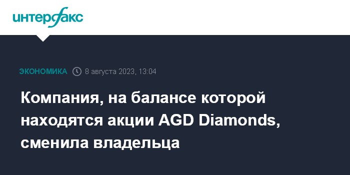 Компания, на балансе которой находятся акции AGD Diamonds, сменила владельца