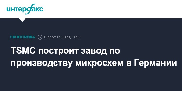 Двумя месяцами ранее конкурент TSMC и один из ведущих мировых производителей компьютерных компонентов Intel Corp. достиг соглашения с властями Германии об инвестировании более 30 млрд евро в два предприятия по выпуску чипов на территории страны.