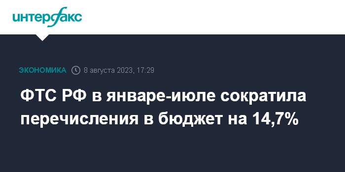 ФТС РФ в январе-июле сократила перечисления в бюджет на 14,7%