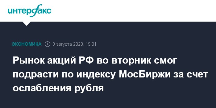 Рынок акций РФ во вторник смог подрасти по индексу МосБиржи за счет ослабления рубля