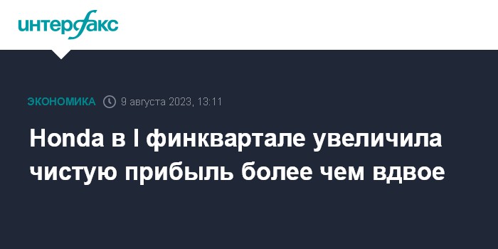 Москва. 9 августа. INTERFAX.RU - Японская Honda Motor Co. в первом финквартале увеличила чистую прибыль в 2,4 раза за счет резкого роста доходов автомобильного бизнеса.