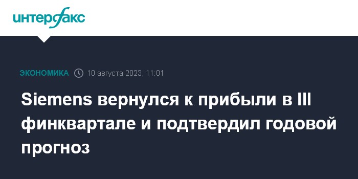 Москва. 10 августа. INTERFAX.RU - Крупнейший в Европе промышленный конгломерат Siemens AG получил чистую прибыль в третьем квартале 2023 финансового года и увеличил выручку, а также подтвердил годовой прогноз.