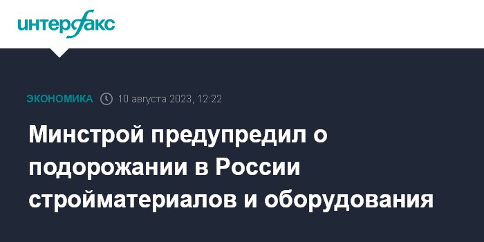 Минстрой предупредил о подорожании в России стройматериалов и оборудования