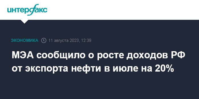 МЭА сообщило о росте доходов РФ от экспорта нефти в июле на 20%