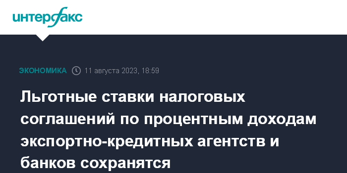 Льготные ставки налоговых соглашений по процентным доходам экспортно-кредитных агентств и банков сохранятся