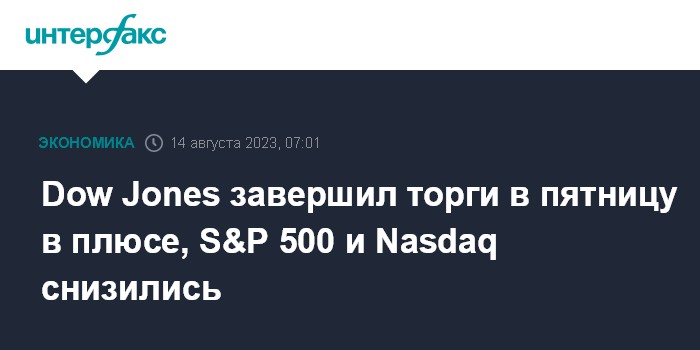 Москва. 14 августа. INTERFAX.RU - Американские фондовые индексы изменились разнонаправленно в пятницу: Dow Jones Industrial Average завершил сессию ростом, S&P 500 и Nasdaq Composite снизились.