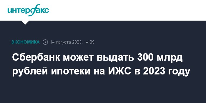 Москва. 14 августа. INTERFAX.RU - Общий объем выдач ипотеки Сбером на индивидуальное жилищное строительство (ИЖС) по итогам 2023 года достигнет 300 млрд рублей, сообщили в пресс-службе банка.