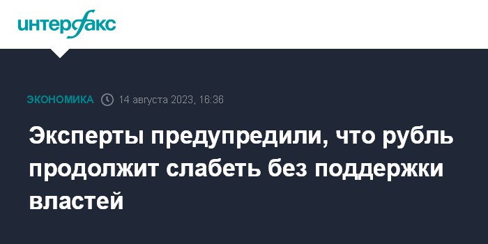 Москва. 14 августа. INTERFAX.RU - Рубль в ближайшее время продолжит показывать негативную динамику, для слома тренда нужны действия со стороны финансовых властей, считают опрошенные "Интерфаксом" эксперты.