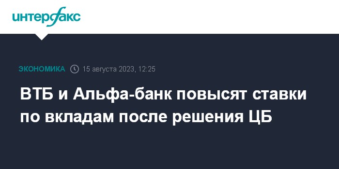 ВТБ и Альфа-банк повысят ставки по вкладам после решения ЦБ