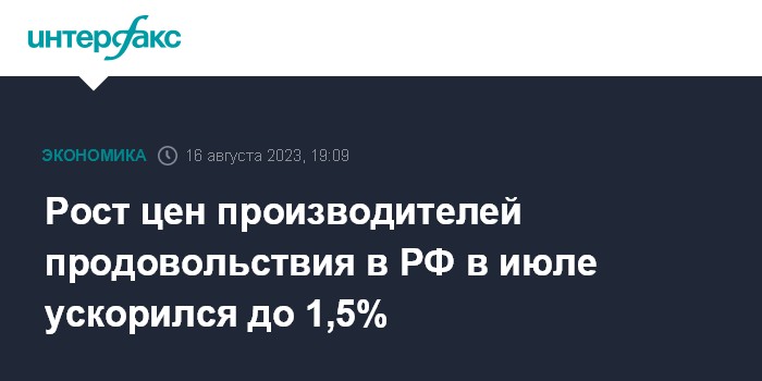 Рост цен производителей продовольствия в РФ в июле ускорился до 1,5%