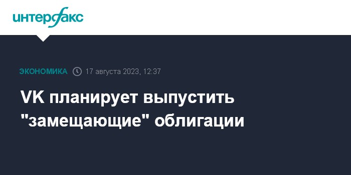 Москва. 17 августа. INTERFAX.RU - Компания VK приняла решение о размещении замещающих облигаций согласно требованиям российского законодательства, говорится в ее сообщении.