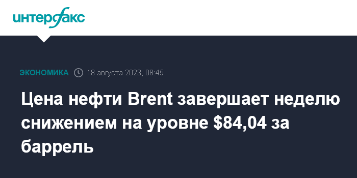 Цена нефти Brent завершает неделю снижением на уровне $84,04 за баррель