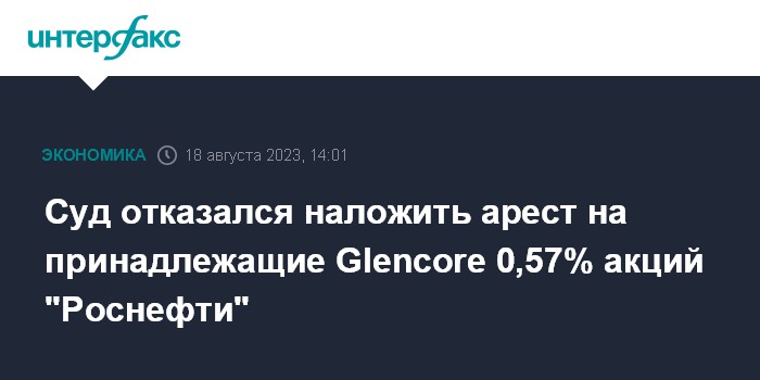 Суд отказался наложить арест на принадлежащие Glencore 0,57% акций "Роснефти"