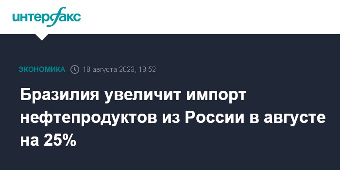 Бразилия увеличит импорт нефтепродуктов из России в августе на 25%