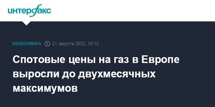 Москва. 21 августа. INTERFAX.RU - Спотовые цены на газ в Европе утром в понедельник подскочили до двухмесячного максимума - цена с поставкой "на день вперед" на эталонном европейском хабе TTF выросла в понедельник до $449 за тысячу кубометров.