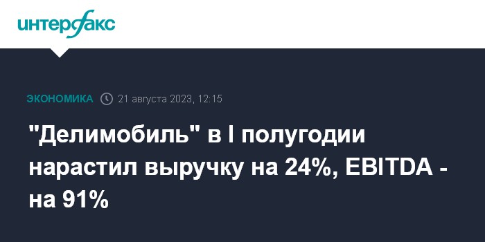 Москва. 21 августа. INTERFAX.RU - Выручка ООО "Каршеринг Руссия", оказывающего услуги каршеринга под брендом "Делимобиль", в I полугодии 2023 года выросла на 24% - до 8,56 млрд рублей, говорится в сообщении компании.