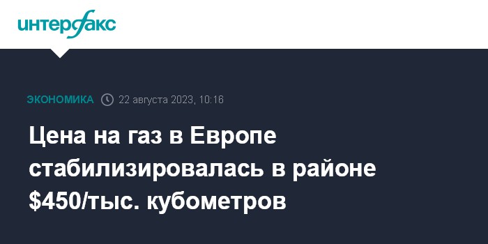 Москва. 22 августа. INTERFAX.RU - Спотовые котировки газа в Европе стабильно держатся в районе $450 за тысячу кубометров.