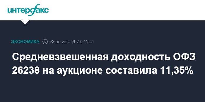 Средневзвешенная доходность ОФЗ 26238 на аукционе составила 11,35%