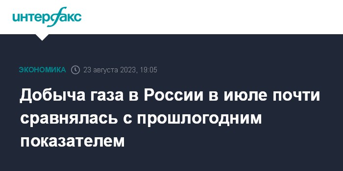Добыча газа в России в июле почти сравнялась с прошлогодним показателем