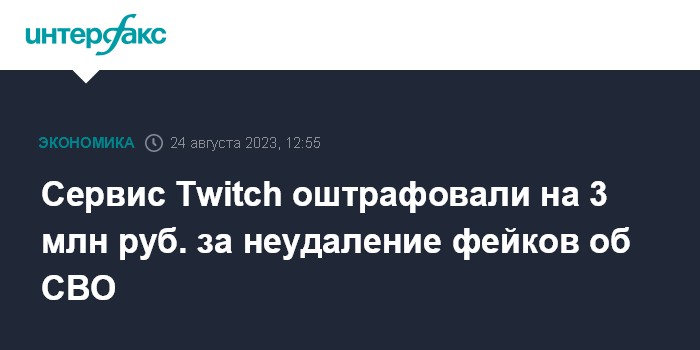 Сервис Twitch оштрафовали на 3 млн руб. за неудаление фейков об СВО