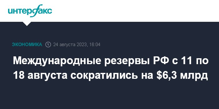 Международные резервы РФ с 11 по 18 августа сократились на $6,3 млрд