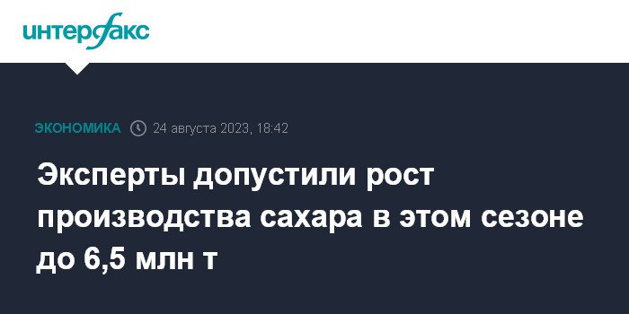 Эксперты допустили рост производства сахара в этом сезоне до 6,5 млн т