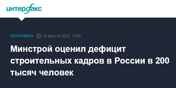 "На сегодняшний день (...) дефицит - порядка 200 тысяч человек в строительстве и порядка 100 тысяч - в ЖКХ. Но, опять же, (...) это порядка 75 субъектов на регулярной основе. (...) Дефицит есть повсеместно", - сказала она.