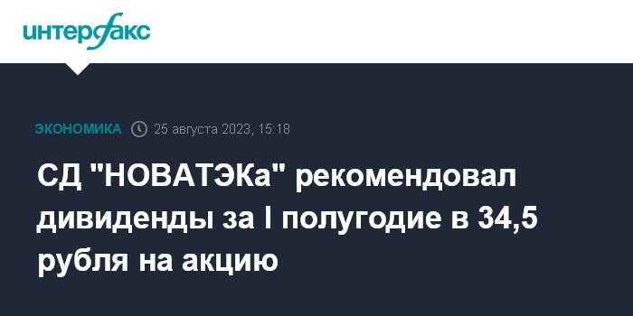 СД "НОВАТЭКа" рекомендовал дивиденды за I полугодие в 34,5 рубля на акцию