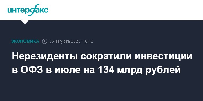Нерезиденты сократили инвестиции в ОФЗ в июле на 134 млрд рублей
