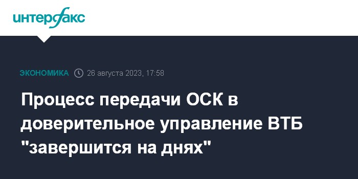 Процесс передачи ОСК в доверительное управление ВТБ "завершится на днях"