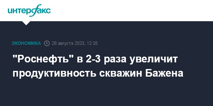 "Роснефть" в 2-3 раза увеличит продуктивность скважин Бажена