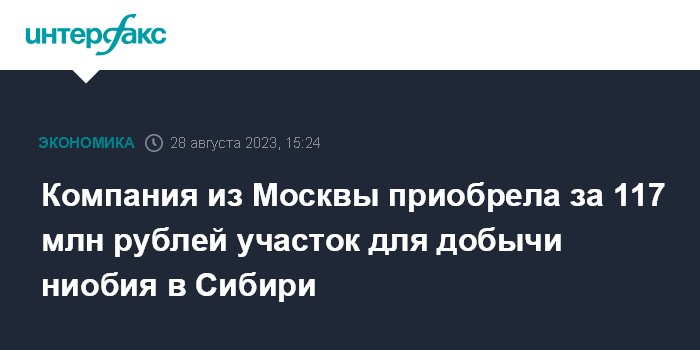 Компания из Москвы приобрела за 117 млн рублей участок для добычи ниобия в Сибири