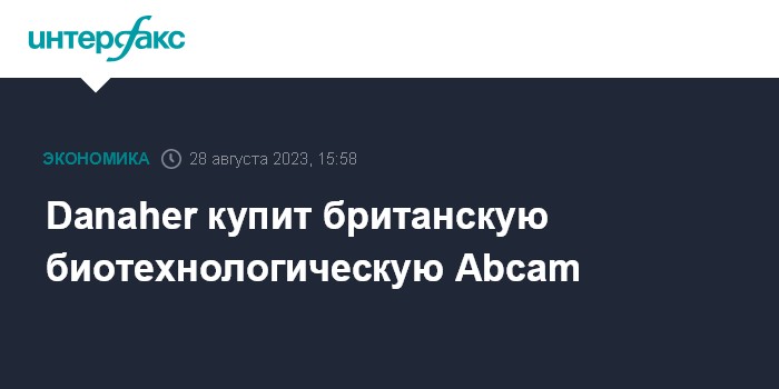Москва. 28 августа. INTERFAX.RU - Американский промышленный конгломерат Danaher Corp. договорился о покупке британской биотехнологической Abcam plc по цене $24 за акцию, говорится в пресс-релизах компаний. Таким образом, Abcam оценена примерно в $5,7 млрд, включая долг.