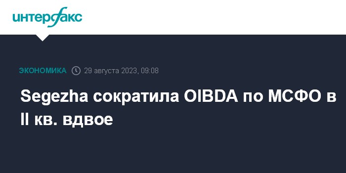 Москва. 29 августа. INTERFAX.RU - Подконтрольный АФК "Система" лесопромышленный холдинг Segezha Group завершил II квартал 2023 года с ожидаемым снижением OIBDA в 2 раза в годовом исчислении - до 2,93 млрд рублей с 5,9 млрд рублей.