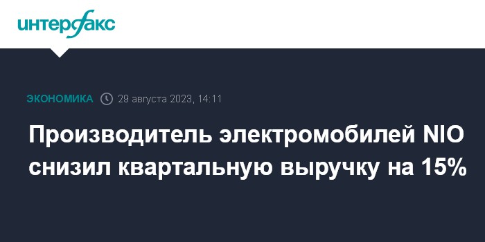 Москва. 29 августа. INTERFAX.RU - Китайский производитель электромобилей NIO во втором квартале сократил выручку на 14,8%, до 8,772 млрд юаней ($1,21 млрд млрд) с 10,29 млрд юаней годом ранее, но дал хороший прогноз на третий квартал.