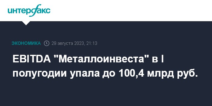 Москва. 29 августа. INTERFAX.RU - EBITDA АО ХК "Металлоинвест" в I полугодии сократилась до 100,4 млрд рублей по сравнению со 163,1 млрд рублей годом ранее, говорится в отчетности компании.