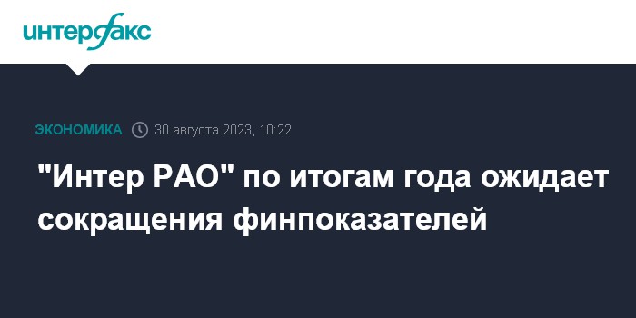 Москва. 30 августа. INTERFAX.RU - ПАО "Интер РАО" ожидает сокращения EBITDA и чистой прибыли по итогам 2023 года, аналогичного итогам полугодия, сообщил журналистам глава компании Борис Ковальчук.