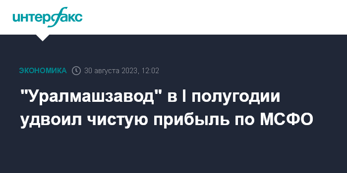 Москва. 30 августа. INTERFAX.RU - Группа "Уральского завода тяжелого машиностроения" ("Уралмашзавод", входит в ГК "УЗТМ-Картэкс") в январе-июне 2023 года получила чистую прибыль в размере 397,46 млн рублей, что в 1,9 раза больше, чем за аналогичный период 2022 года, сообщается в финотчетности компании по МСФО.