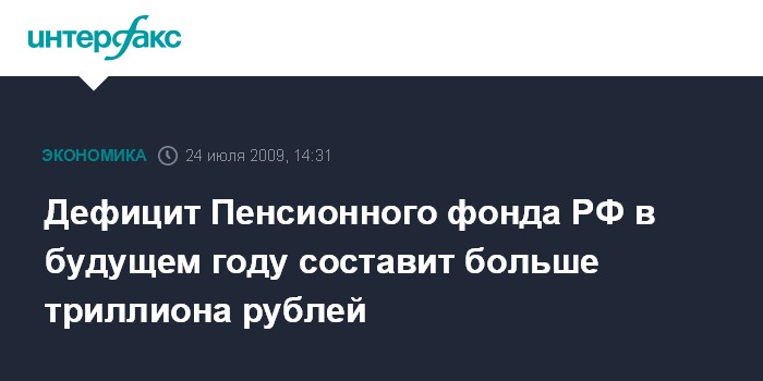 Москва. 24 июля. INTERFAX.RU - Дефицит Пенсионного фонда РФ в 2010 году может составить 1 триллион 166 миллиардов рублей, однако эти средства будут обеспечены из федерального бюджета, заявил вице-премьер РФ, министр финансов Алексей Кудрин. При этом он подчеркнул, что эти ресурсы заложены в прогнозы бюджета.