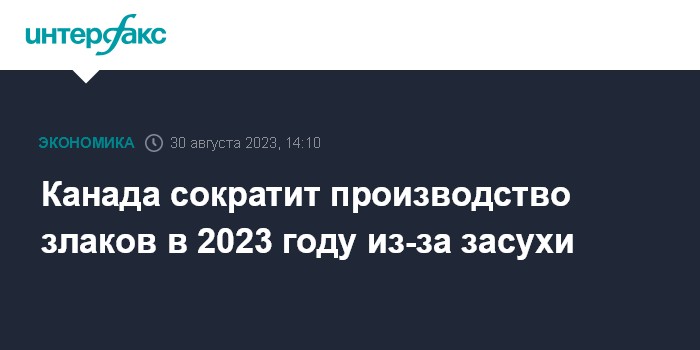 Москва. 30 августа. INTERFAX.RU - В 2023 году Канада сократит производство рапса, а также таких злаков, как пшеница, ячмень и овес на фоне засухи в западных провинциях, говорится в прогнозе Статистической службы страны.