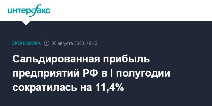 Сальдированная прибыль предприятий РФ в I полугодии сократилась на 11,4%
