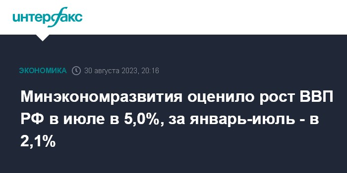 В целом за январь-июль 2023 года министерство оценило рост экономики на 2,1%.
