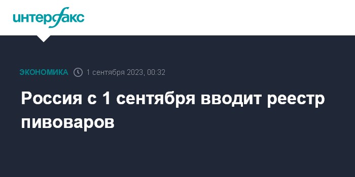 Москва. 1 сентября. INTERFAX.RU - Реестр производителей пива и пивных напитков, сидра, пуаре, медовухи вступает в РФ силу с 1 сентября.