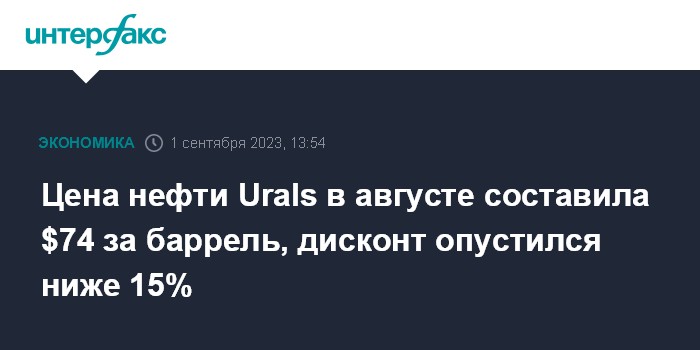 Средняя цена на нефть North Sea Dated (Brent), по данным Минфина, в августе 2023 года составила $86,2 за баррель. Таким образом, дисконт Urals к бенчмарку составил порядка 14,2%.