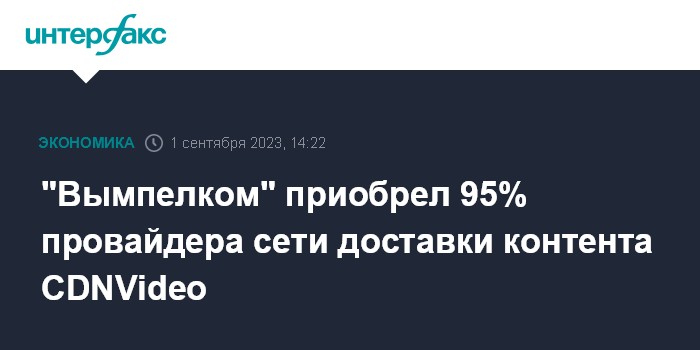 Москва. 1 сентября. INTERFAX.RU - ПАО "Вымпелком" стало владельцем 95% ООО "СДН-Видео" (оператор сети доставки контента CDNVideo), свидетельствуют данные ЕГРЮЛ.